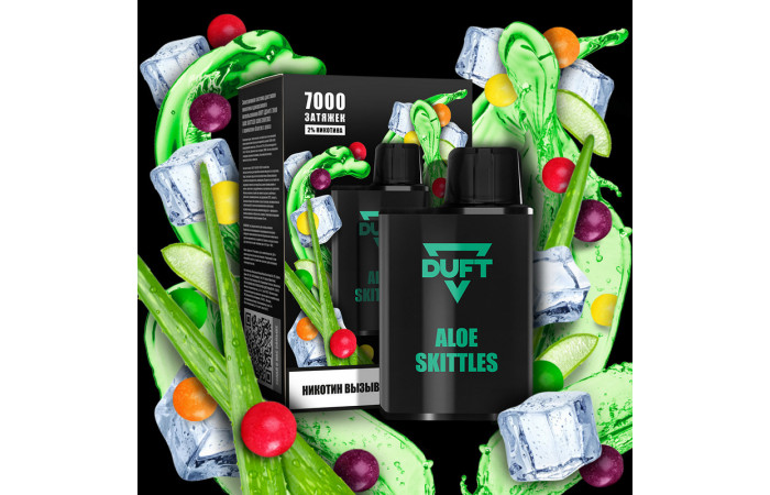 "Откройте для себя новый уровень вкуса с электронной сигаретой DUFT 7000 - Aloe Skittles (Алоэ Скитлс) от известного производителя Duft. Эта модель сочетает в себе экзотический вкус алоэ и яркие нотки Skittles, создавая неповторимое вкусовое сочетание. Содержание никотина в 2% обеспечивается за счет использования солевого никотина, что делает каждую затяжку максимально мягкой и приятной.