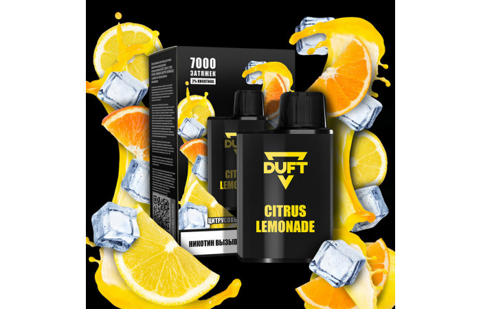 "Откройте для себя новый уровень вкуса с электронной сигаретой DUFT 7000 - Citrus Lemonade (Цитрус Лимонад) от известного производителя Duft. Эта модель предлагает уникальное сочетание освежающего вкуса цитруса и лимонада, идеально подходящее для любителей фруктовых ароматов. Содержание никотина в 2% в сочетании с солевым никотином обеспечивает мягкое и приятное воздействие, делая каждую затяжку удовлетворительной.