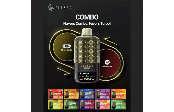 Elf Bar COMBO 25000 - одноразовый вейп с комбинированным переключателем: можно выбрать какой-то один из двух вкусов или смешать их вместе.