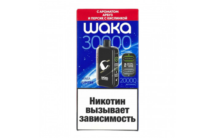 Линейка электронных сигарет Waka Jupiter на рекордные 30000 затяжек. Продукция Waka отличается повышенной крепостью.