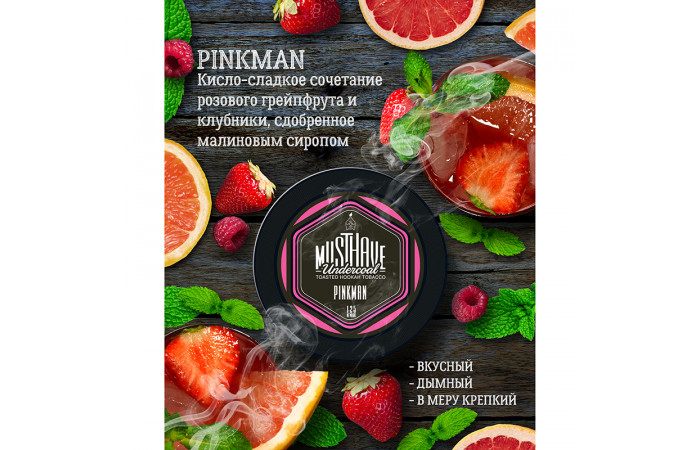 Табак Must Have Pinkman заслуженно считается одним из топовых продуктов этого производителя. Это настоящий шедевр. Смелое и даже дерзкое сочетание розового грейпфрута, клубники и малинового сиропа – вот что представляет собой оригинальный табак для кальяна Must Have Pinkman.