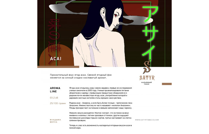 Описание вкуса табака для кальяна Satyr - Acai (Ягоды Асаи) 100г