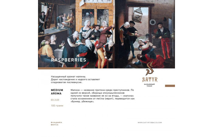 Описание вкуса табака для кальяна Satyr - Raspberry (Малина) 100г