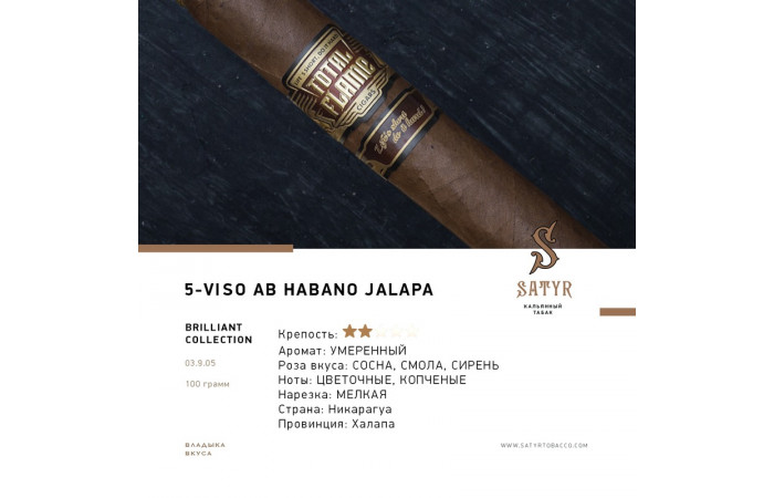 Описание вкуса табака для кальяна Satyr - VISO AB HABANO JALAPA #5 (Без ароматизаторов) 100г