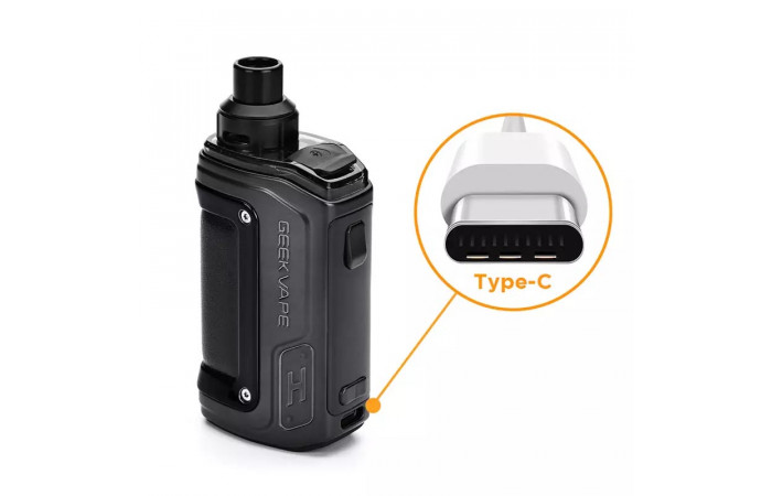 POD-система Geekvape H45 (Aegis Hero 2) Pod Mod Kit - компактное устройство с интересным дизайном. Корпус сделан из металла и идёт со вставкой из эко-кожи. В Аегис Хиро 2 предусмотрена защита класса IP67 от пыли и ударов. На лицевой стороне Geekvape H45 расположена кнопка включения и кнопка регулировки мощности. Также там находится цветной дисплей, на котором отображаются все необходимые параметры устройства Аегис Хиро 2.