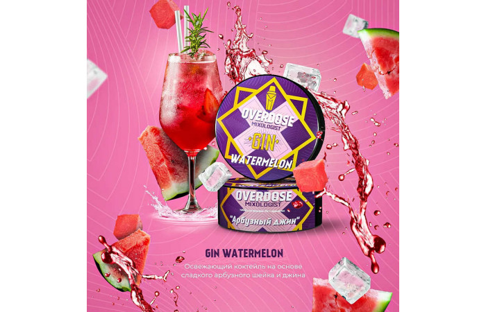 Описание вкуса табака для кальяна Overdose - Джин Арбуз (Gin Watermelon) 200г