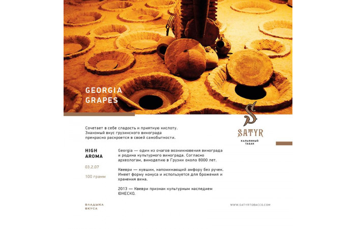 Описание вкуса табака для кальяна Satyr - Georgia Grapes (Виноград) 100г