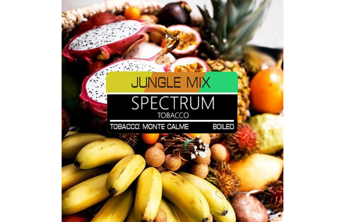 Табак Spectrum Jungle Mix позволяет представить, будто вы волшебным образом переместились в джунгли. Это яркий и ароматный тропический микс, наполненный безупречно натуральными и мгновенное узнаваемыми нотками ананаса, банана и различных цитрусовых.